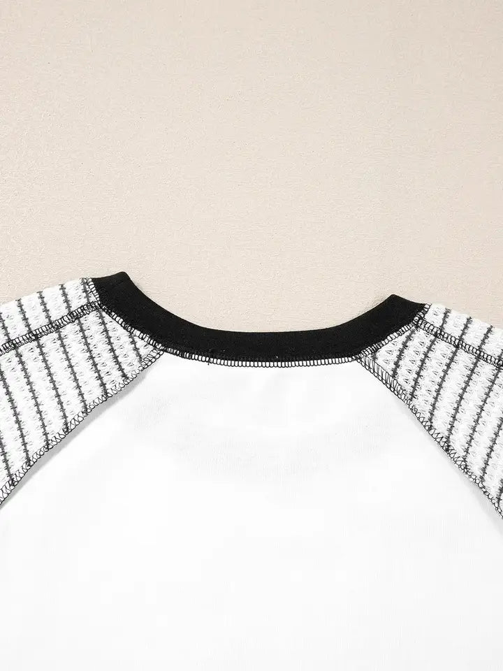 • This patchwork top has a chic look with striped raglan sleeves design.