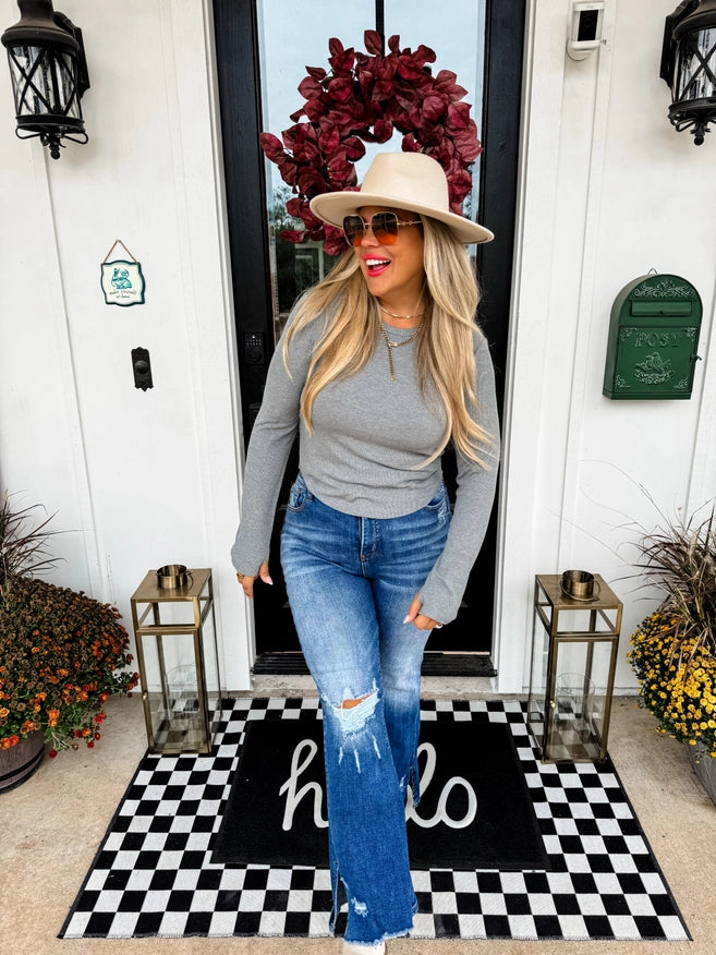 Features a high/low front/back with curved sides that form fitting, small waist appearance! Features thumbhole sleeves.