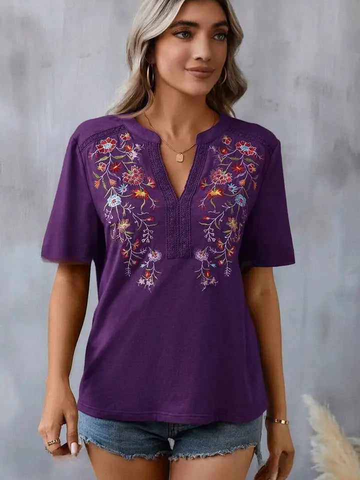 EMBROIDERY Patchwork Lace Lace Short Sleeve Top