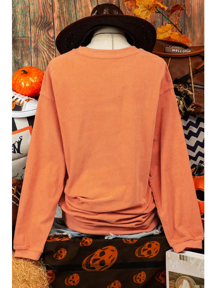 Fashion Halloween Pumpkin Ribbed Round Neck Sweatshirt