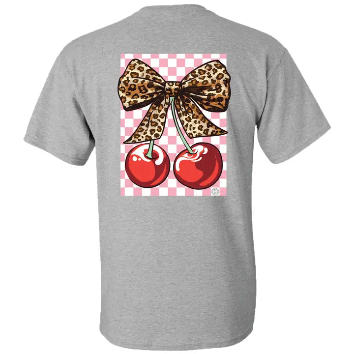 Leopard Cherry Southern Sassy Preppy Leopard Short Sleeve Graphic Tee