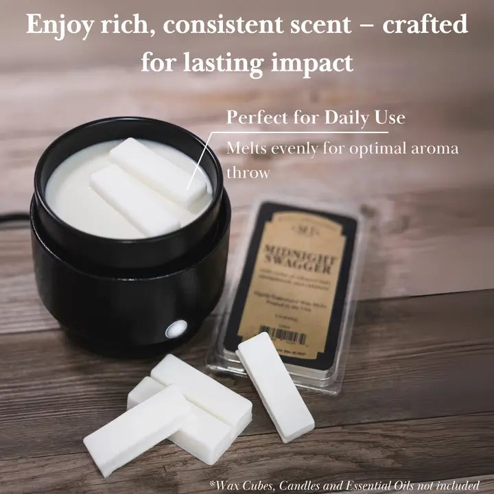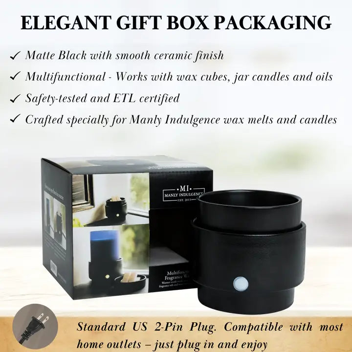 This Black Manly Indulgence Warmer is a rugged 3-in-1 electric fragrance system built for versatility—compatible with wax melts, jar candles, and essential oils. Designed with a sleek ceramic finish and engineered for flameless, worry-free use, it delivers dependable performance and subtle atmosphere. A reliable essential from a brand trusted for everyday quality and durability.