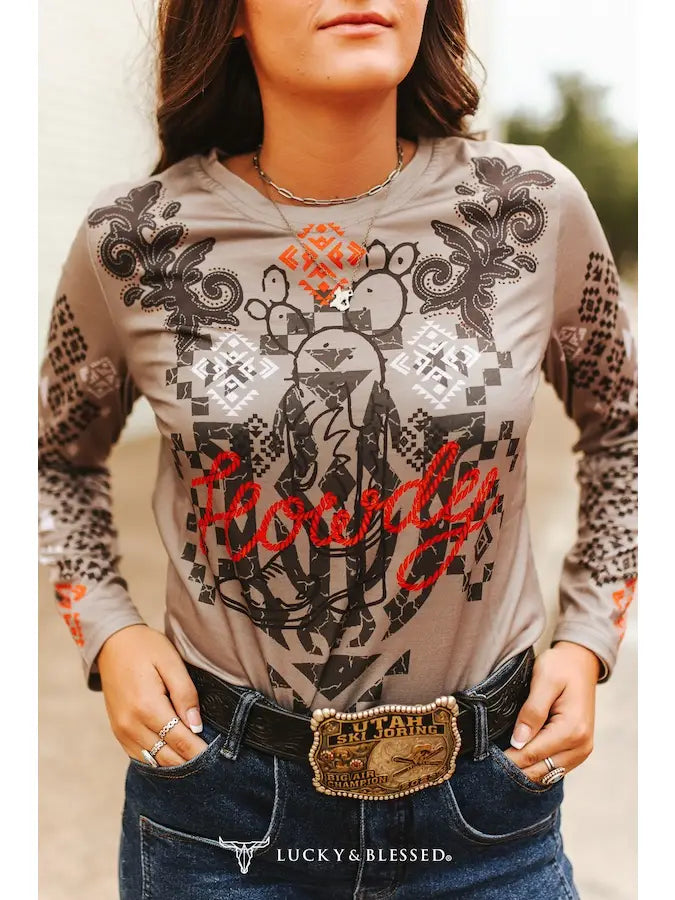 Mocha Cactus Aztec Howdy Printed Long Sleeve Top