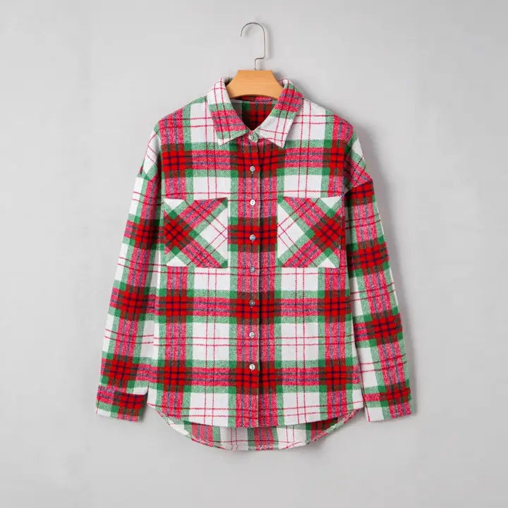 Plaid Checkered Christmas Shirt Jacket - Holiday Cozy Fit