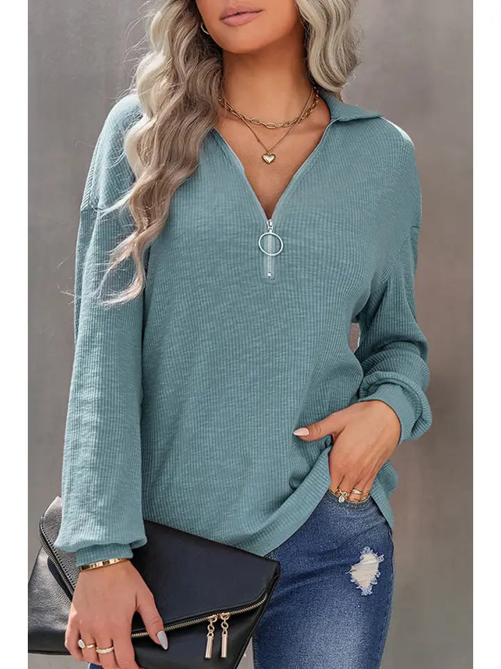 Material: 97% Polyester 3% SpandexFeatures: Solid Knit Lapel Half Zip Long Sleeve PulloverOccasion: Casual/Daily/Outdoor/Vacation/Holiday/School/Going Out.