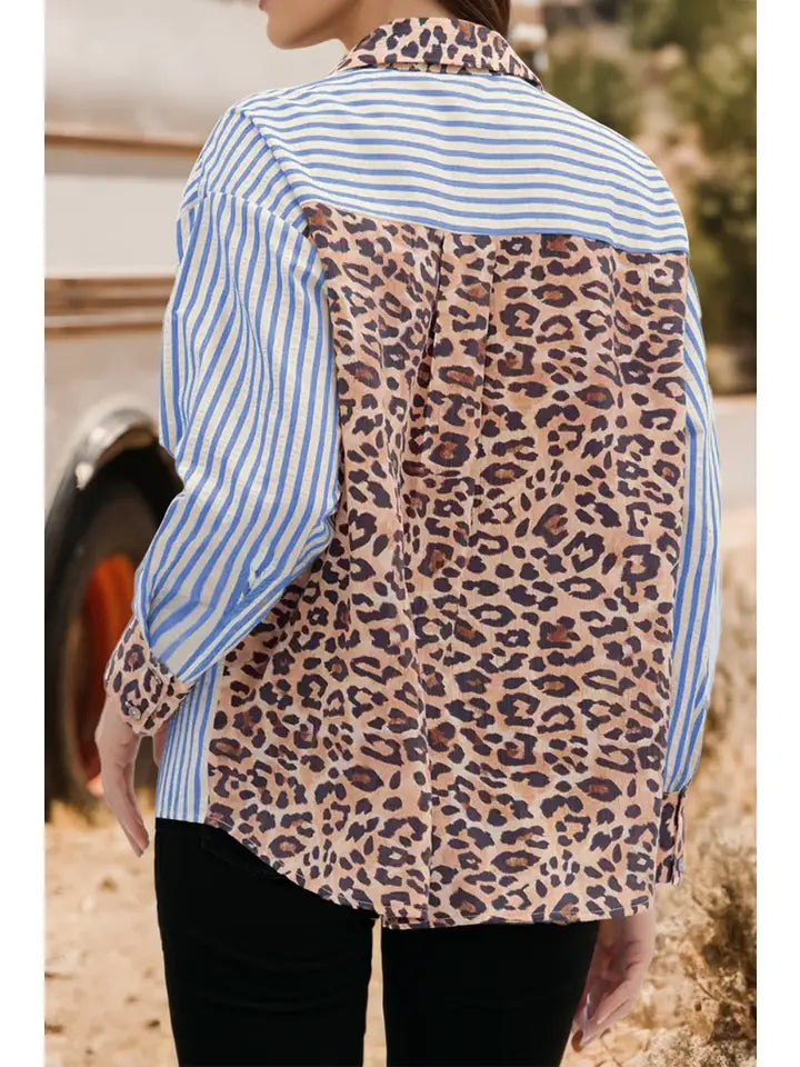 Description🌺Material: 100%Polyester🌺Pattern: Leopard🌺Neckline: Collared🌺Sleeve: Long sleeve🌺Details: Shift