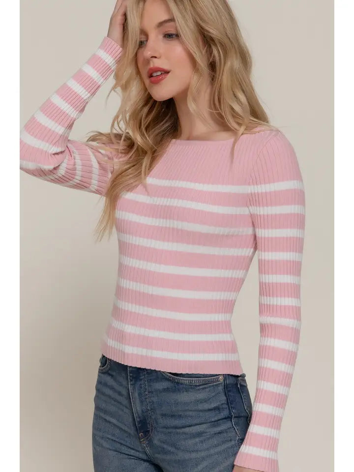 JUNIOR FITLONG SLEEVE BOAT NECK STRIPE SWEATER
