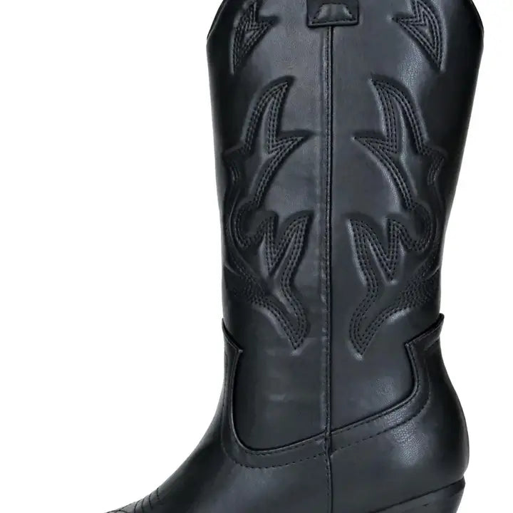 EMBROIDERED WESTERN COWBOY BOOTS BLACK, RED: FAUX PU LEATHER BROWN: NUBUCK PU LEATHER SHAFT HEIGHT: 11.5" HEEL HEIGHT: 2.5"