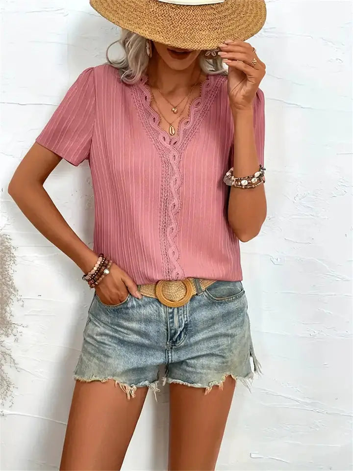 V-Neck Jacquard Puffy Sleeve Blouse